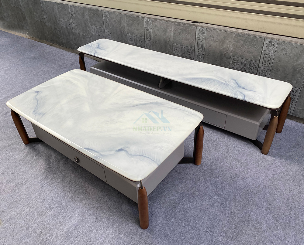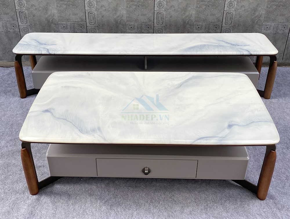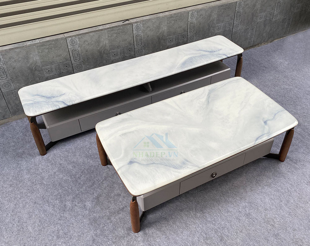 Bộ bàn trà, kệ tivi mặt đá nhập khẩu C01