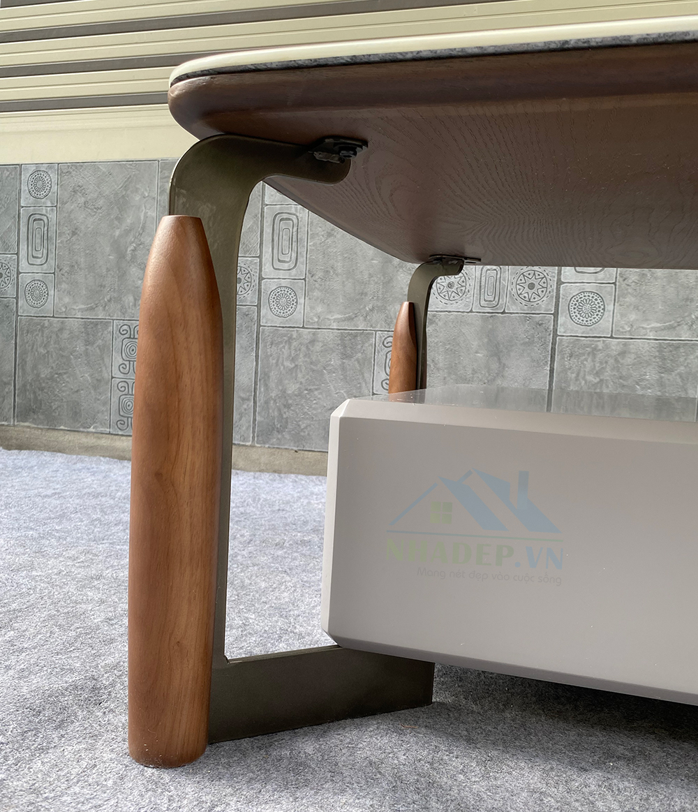 Chân bàn được làm bằng gỗ kết hợp thép sơn tĩnh điện cao cấp, nhẵn mịn, có đế chống trơn trượt, bảo vệ mặt sàn & thuận tiện hơn trong việc dọn dẹp vệ sinh.