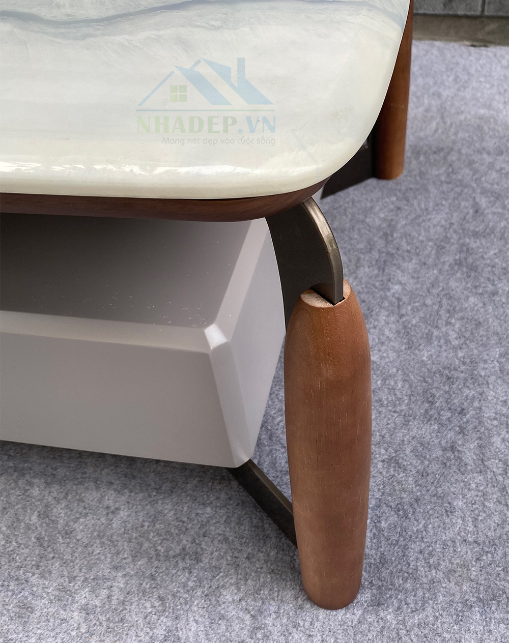 Mặt trên của bộ sản phẩm là đá nhân tạo được mài bóng với những đường vân sống động, tự nhiên cùng màu sắc trang nhã.