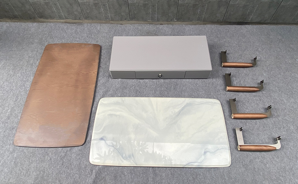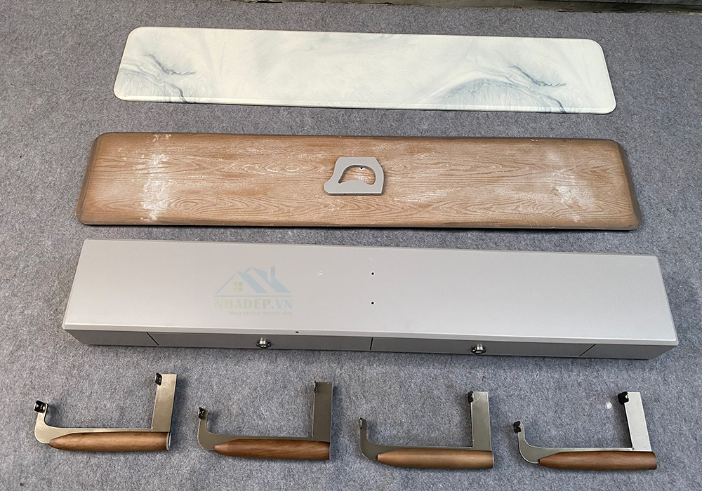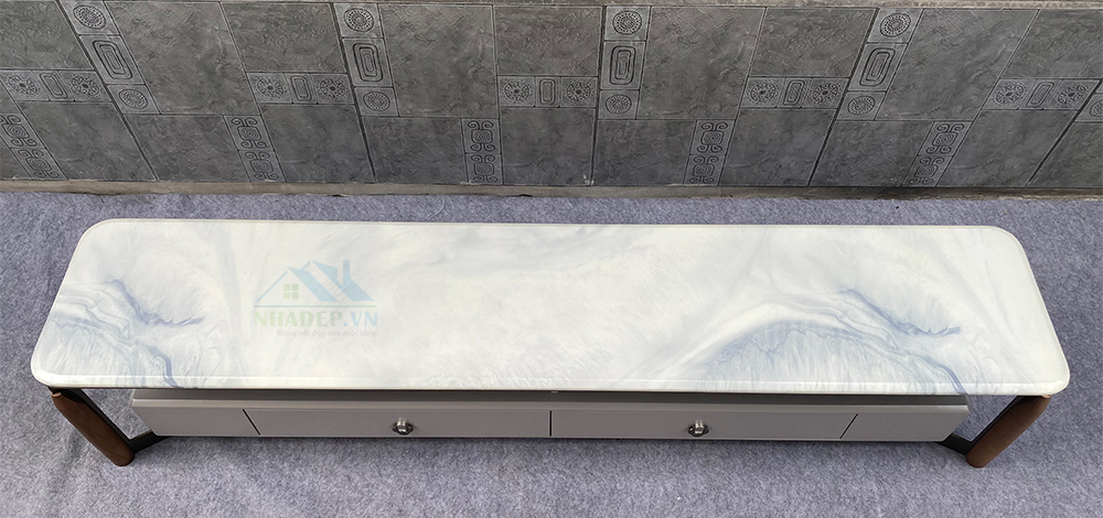 - Mặt trên của bộ kệ, bàn là đá nhân tạo có độ cứng hoàn hảo, có khả năng chống thấm, chống xước tốt.