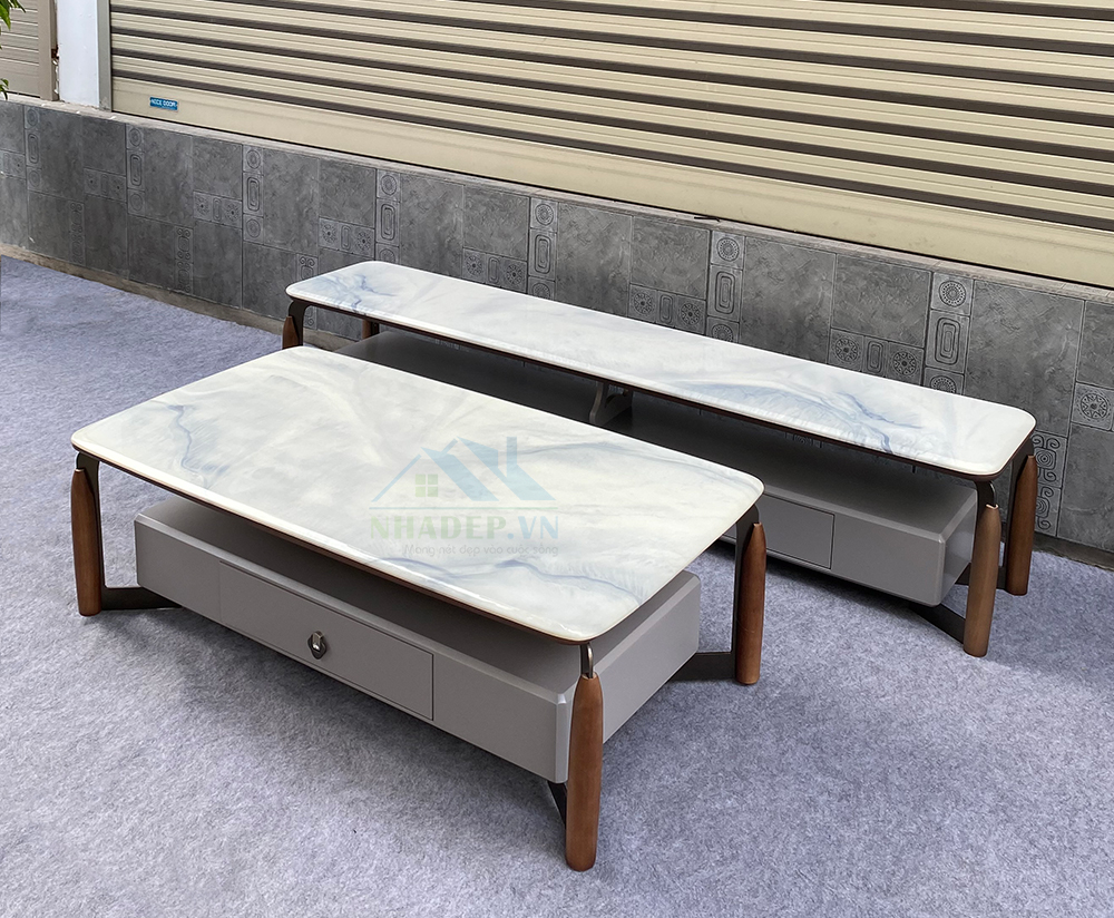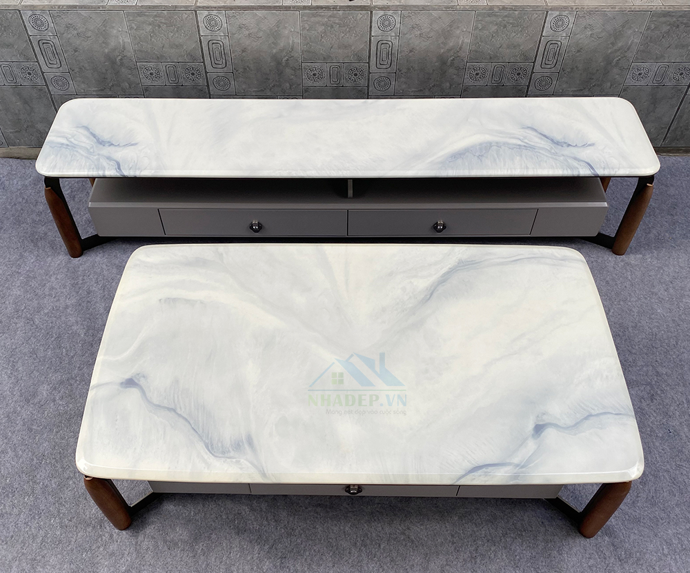 Bộ bàn trà, kệ tivi mặt đá nhập khẩu AT2329.