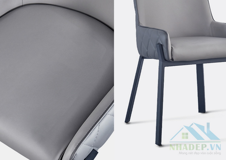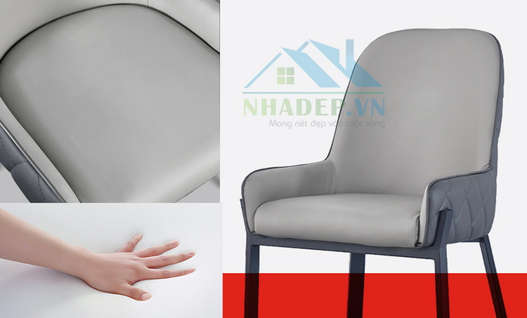 Bề mặt ghế bọc da PU cao cấp với các đường may đều đặn, chắc chắn cùng độ dầy lớp mút xốp hợp lý không chỉ đem đến sự thoải mái tối đa cho người ngồi mà còn tạo không gian nội thất thêm sang trọng, hiện đại.