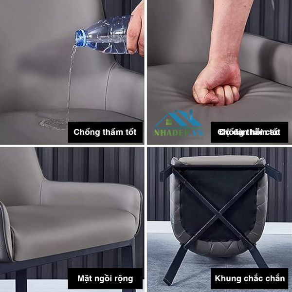 - Chất liệu: chân thép sơn tĩnh điện + đệm mút xốp, bông PE bọc da PU.