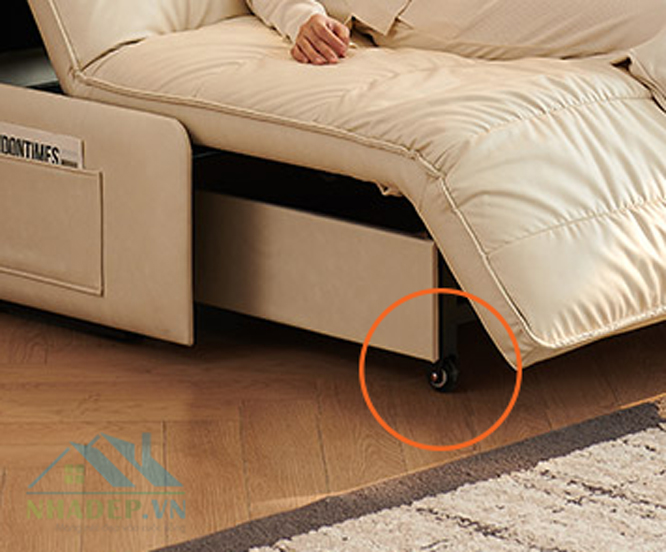 Chân ghế có thiết kế bánh xe giúp bạn thao tác mở-gấp rất đơn giản, nhanh chóng.